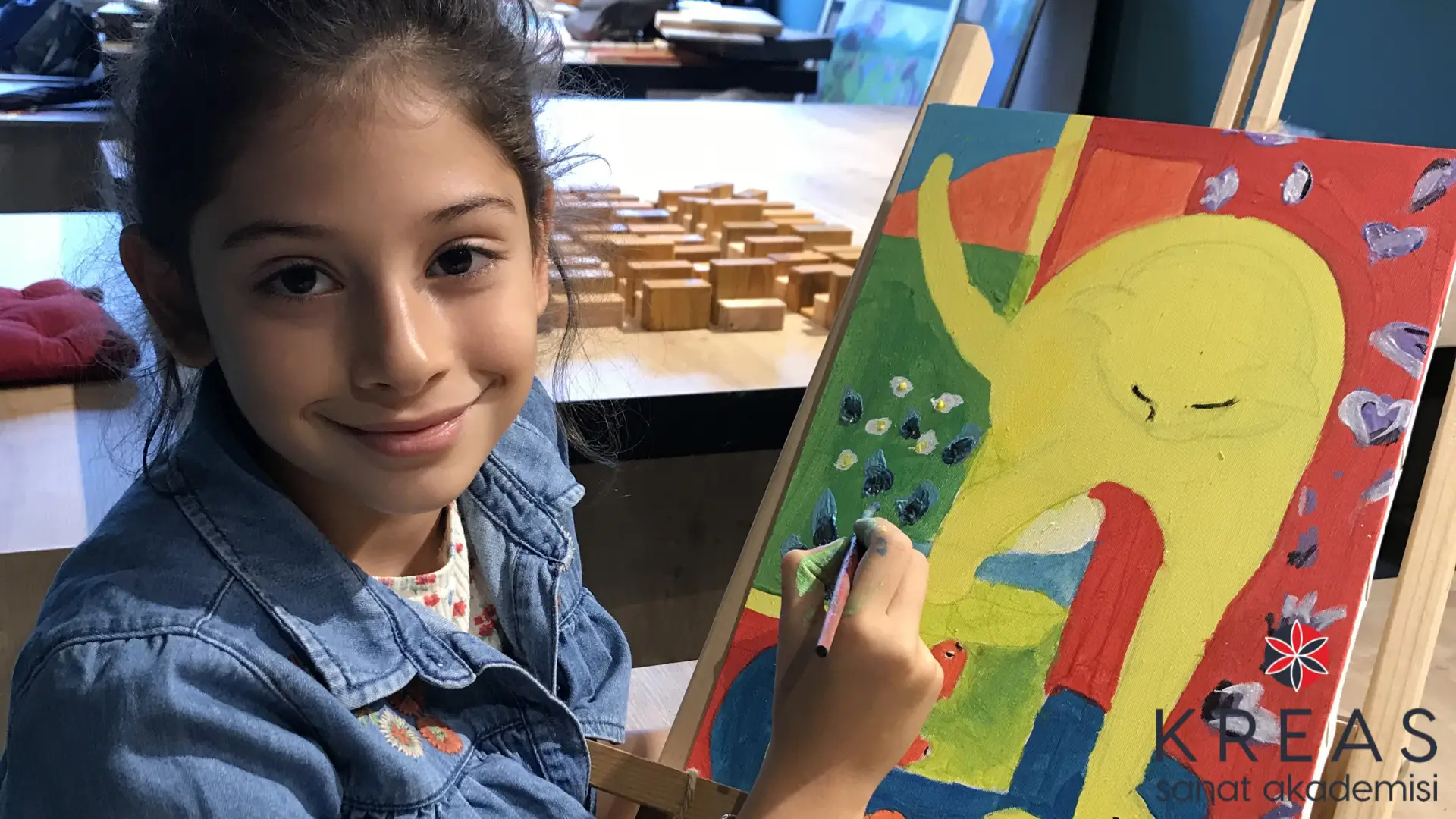 Kreas Sanat Akademisi’nde görsel sanatlar eğitimi, renklerle düşünmeyi, hayal gücünü geliştirmeyi ve estetik bakış açısını güçlendirmeyi hedefler. Çocuklar ve gençler farklı tekniklerle tanışarak kendi sanat dillerini oluştururlar.